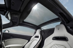 The design is one of the car's strongest attributes - Maserati really nailed it with the MC20 and when turning the Coupe into a Spyder they have managed to keep the beautiful lines that makes the MC20 so special. The MC Cielo's windtunnel-sculpted roof integrates seamlessly into the overall design - you can operate it at speeds up to 50 km/h, and in just 12 seconds the roof has disappeared into the rear housing. Even with the roof up you can watch the sky above - the roof is made out of electrochromic glass, and you can switch from translucent to opaque depending on how much light you want to let in the cabin.